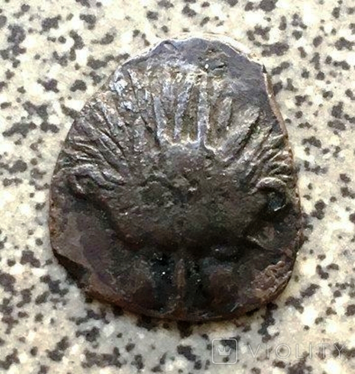 Голова льва – Вдавленный квадрат с буквами АПОЛ. Диаметр 14 х 11 мм. Вес 1,09 г. Состояние VF.