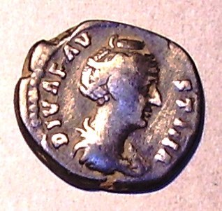 Старшей вправо. DIVA FAVSTINA.О.с. Фигура Вечности с глобусом и скипетром в руках влево. AETERNITAS.